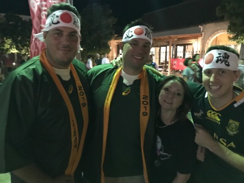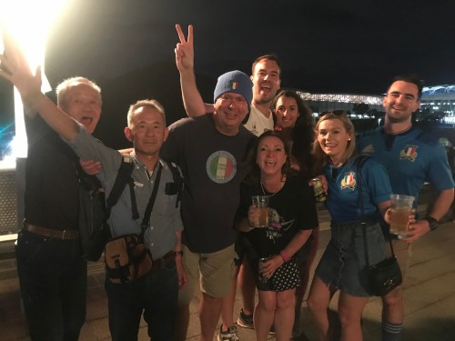 The game went according to plan, another full stadium and Italy let themselves down with a red card early doors. The final score was 49-3 to the Springboks. During the game, sitting behind us were Ryan and Ian who would also become friends on this trip. They were both very happy with the final result and we discovered that they too would be headed to Oita to see Wales vs Fiji the following week, so we swapped numbers, sang and hugged a lot and vowed to meet up again.