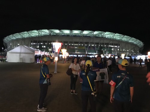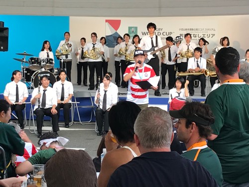 After much song, dance and drinking we walked to the stadium which was apparently only 15 minutes away. That soon became30 mins and as the sun went down the weather began to change. On the walk I met Yoshi, a short man who seemed to know a lot about rugby. I think Yoshi had had a beer or two, but he would not let me go and insisted on telling anyone who would listen that ‘me, Yoshi winger, he, Andy, number eight’. Yoshi was hilarious and summed up perfectly how the Japanese embraced this World Cup and really made it their own.