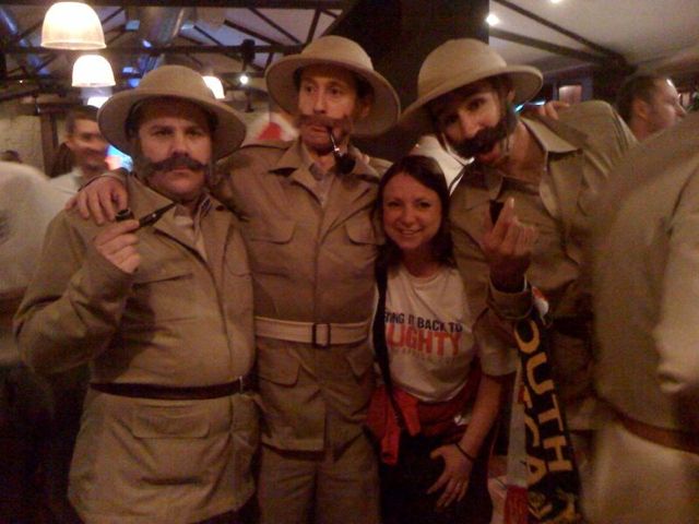 We are off to meet Dom, new arrival Keith and Simon at their hotel bar down the road so after a 5 minute cab (which took over an hour), we arrive to find them happily ensconsed in a really dark, loud bar, having spent the best part of the afternoon there, they were merrily working their way through a mixture of bubbly, red wine and cider! Dom was put to bed, tired and emotional after his epic football marathon and the rest of us headed to Blackbeards for dinner where Chris joined us.