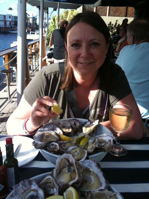 Ansy spotted the restaurant and we again manage to get a table right by the water, but we check this time before sitting down that they definitely have oysters and do they…hurrah!